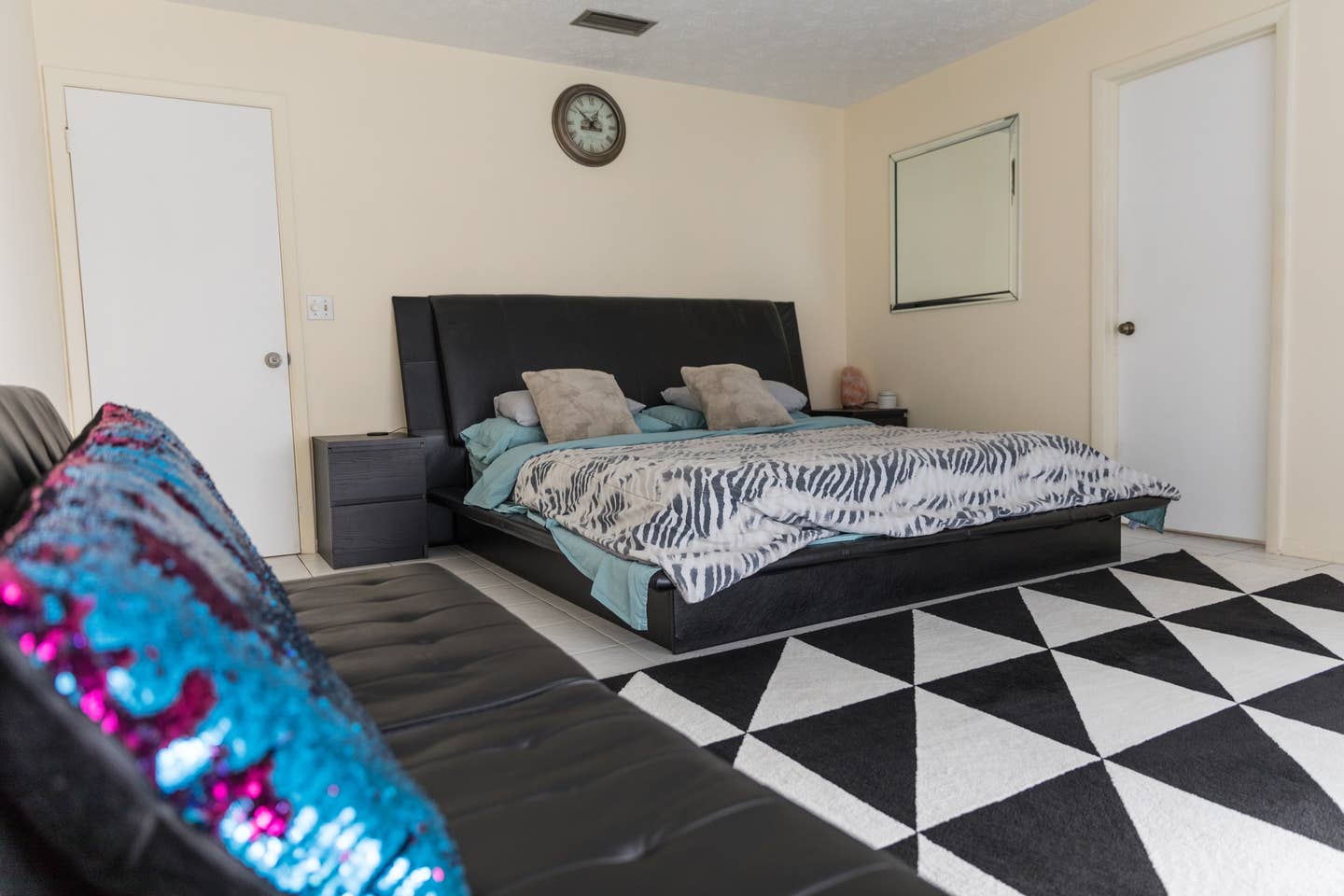 You’ll be staying in one of the rooms with a comfy queen size bed, a closet and shared bathroom.